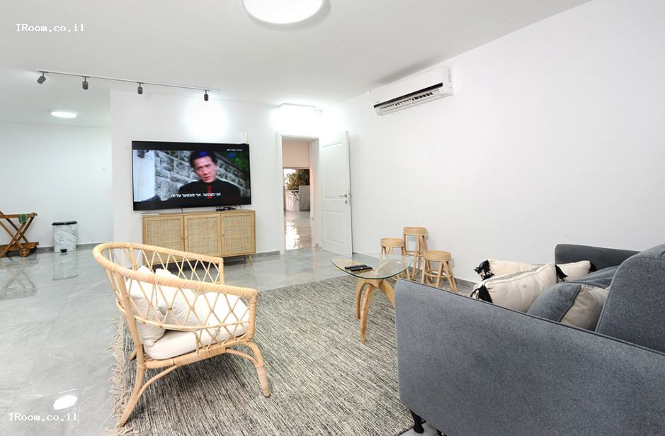 חדר שינה הצופה למרפסת הפרטית ובו מיטה זוגית ומזרן אותופדי, טלוויזיה עם ערוצי יס, אינטרנט אלחוטי.