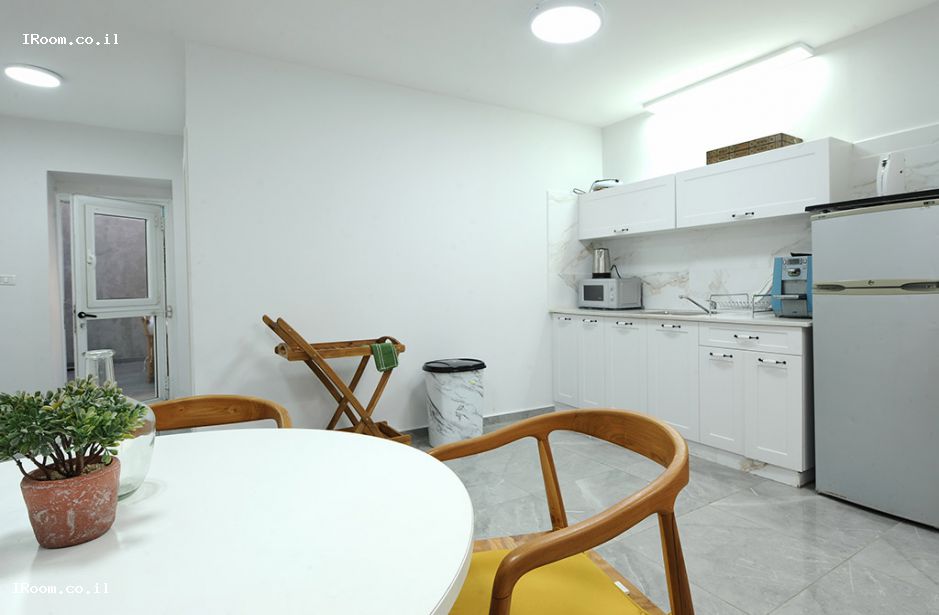 מטבח מצויד בכל הנדרש כולל מכונת קפה, מיקרוגל, מקרר ופינת אוכל.