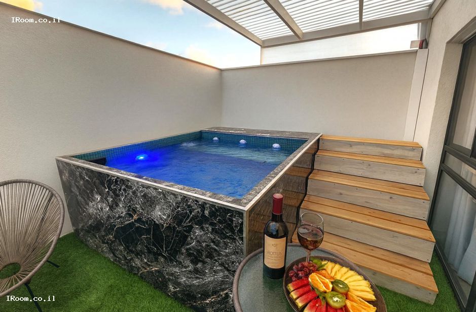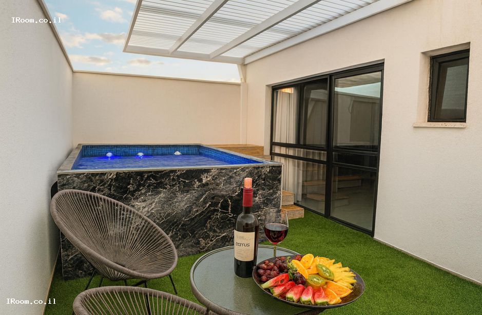 לסוויטת בלאק יש חצר אינטימית עם בריכת זרמים קטנה מחוממת עד 40 מעלות, פינת ישיבה זוגית ותאורת גן לשעות הערב.