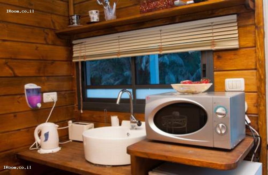יש בקתות עץ זוגית, בקתות משפחתיות, יחידה מאבן.